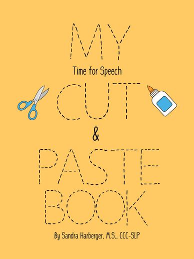“My Time for Speech Cut & Paste Book” can help target speech and language goals while you keep hands busy with a project. Your child can say their target sound or word before gluing each picture on the page. You can ask simple “WH” questions to start a discussion about the picture. Reading a book to go along with the picture can expand vocabulary. Cut & Paste worksheets can be used to improve spacial concepts and following directions. It also improves skills like hand-eye coordination, finger dexterity, and focus.